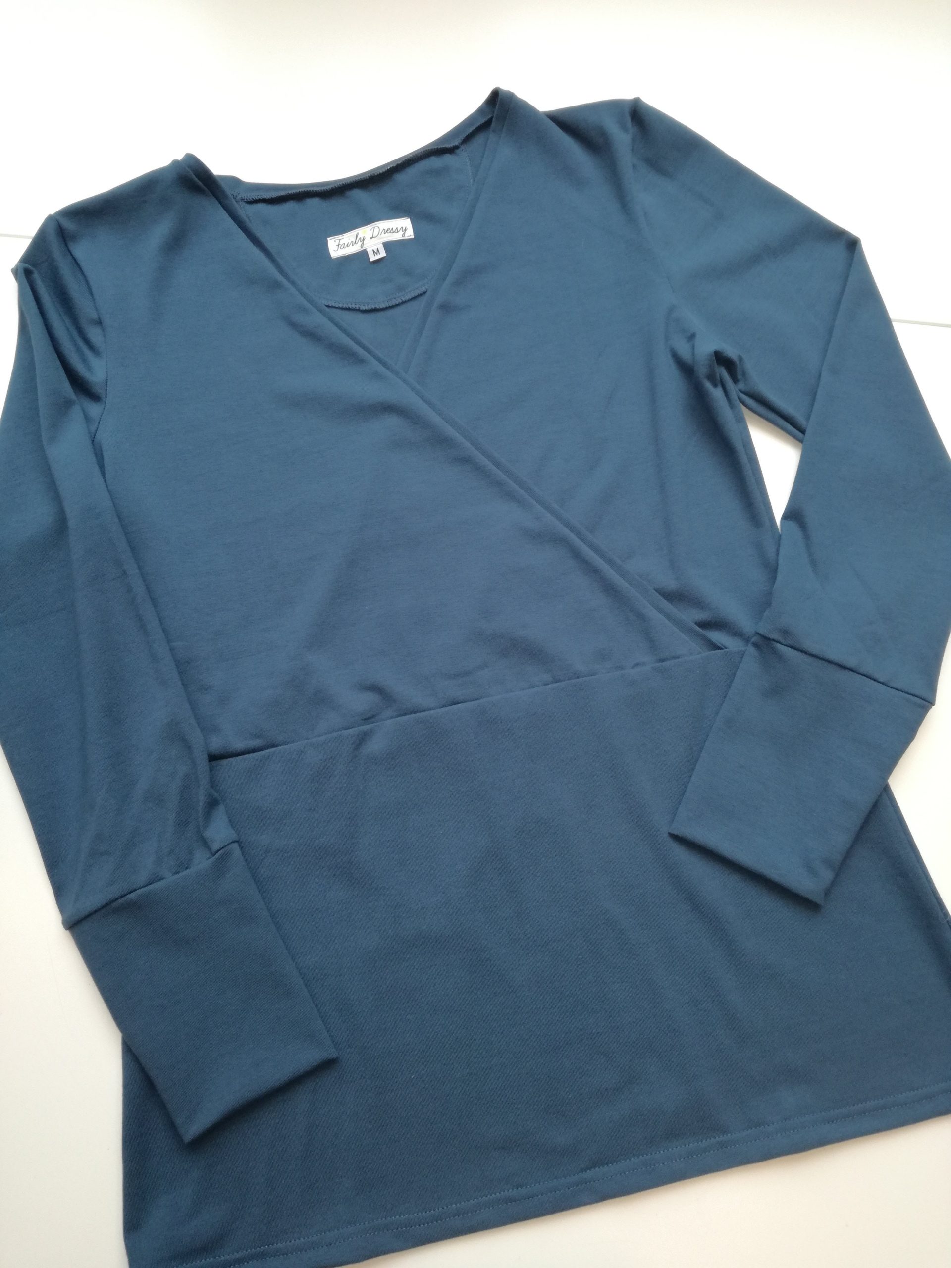 Overslag top met lange mouwen in de kleur ‘gray blue’ een mooi basis stuk en een musthave voor in je kledingkast!
