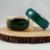Crème hars armband met geschilderde pauwenveer. Diameter 6,5 cm en breedte 3,5 cm.