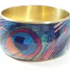 Ga naar inhoudCrème hars armband met geschilderde pauwenveer. Diameter 6,5 cm en breedte 3,5 cm.